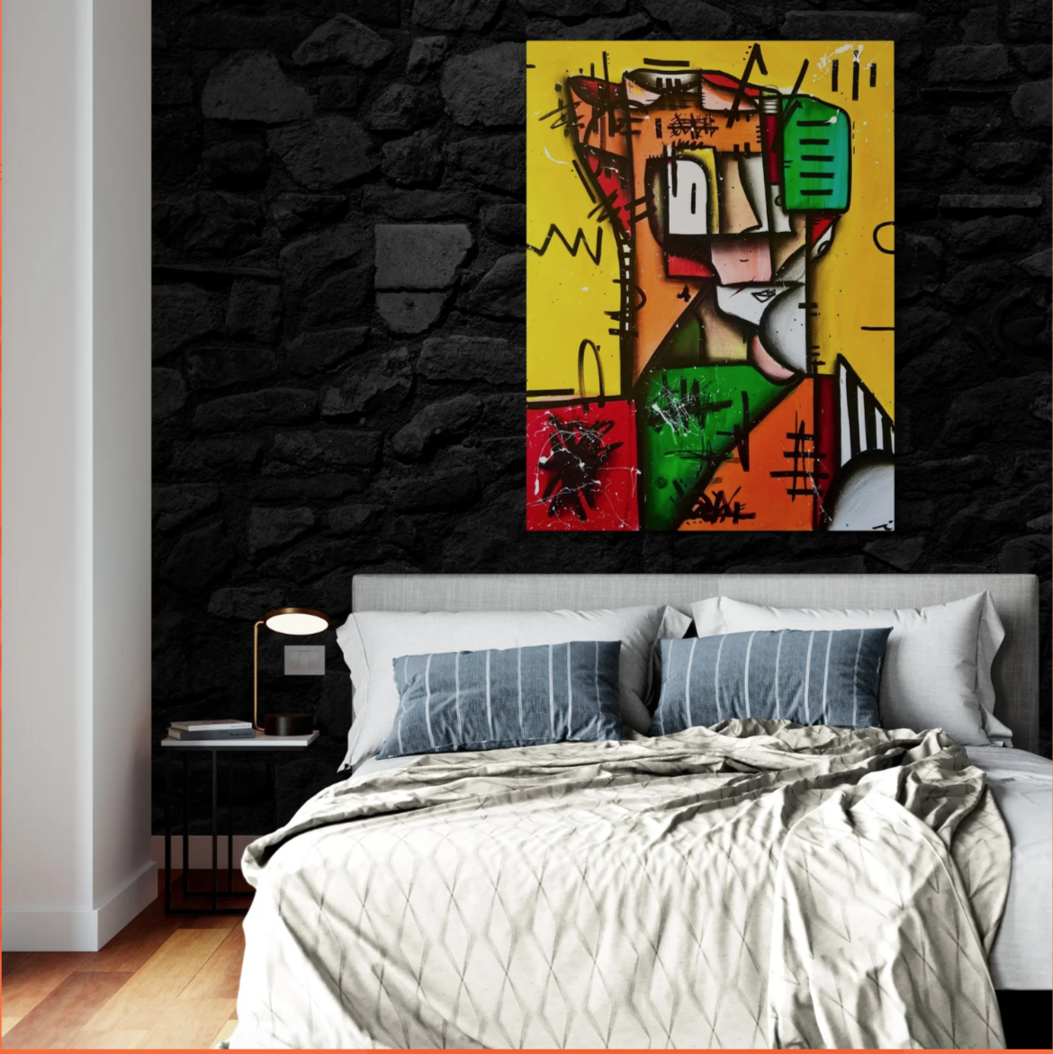 Drawing inspiration from a wide variety of music, ancient religious texts, and intensive studies in psychology, Taveras fuses cubist principles with a futuristic graffiti style that is uniquely his own. In doing so, he promotes awareness of our interconnected existence, challenging the ego's role in modern society, while harmonizing the realms of science and philosophy.