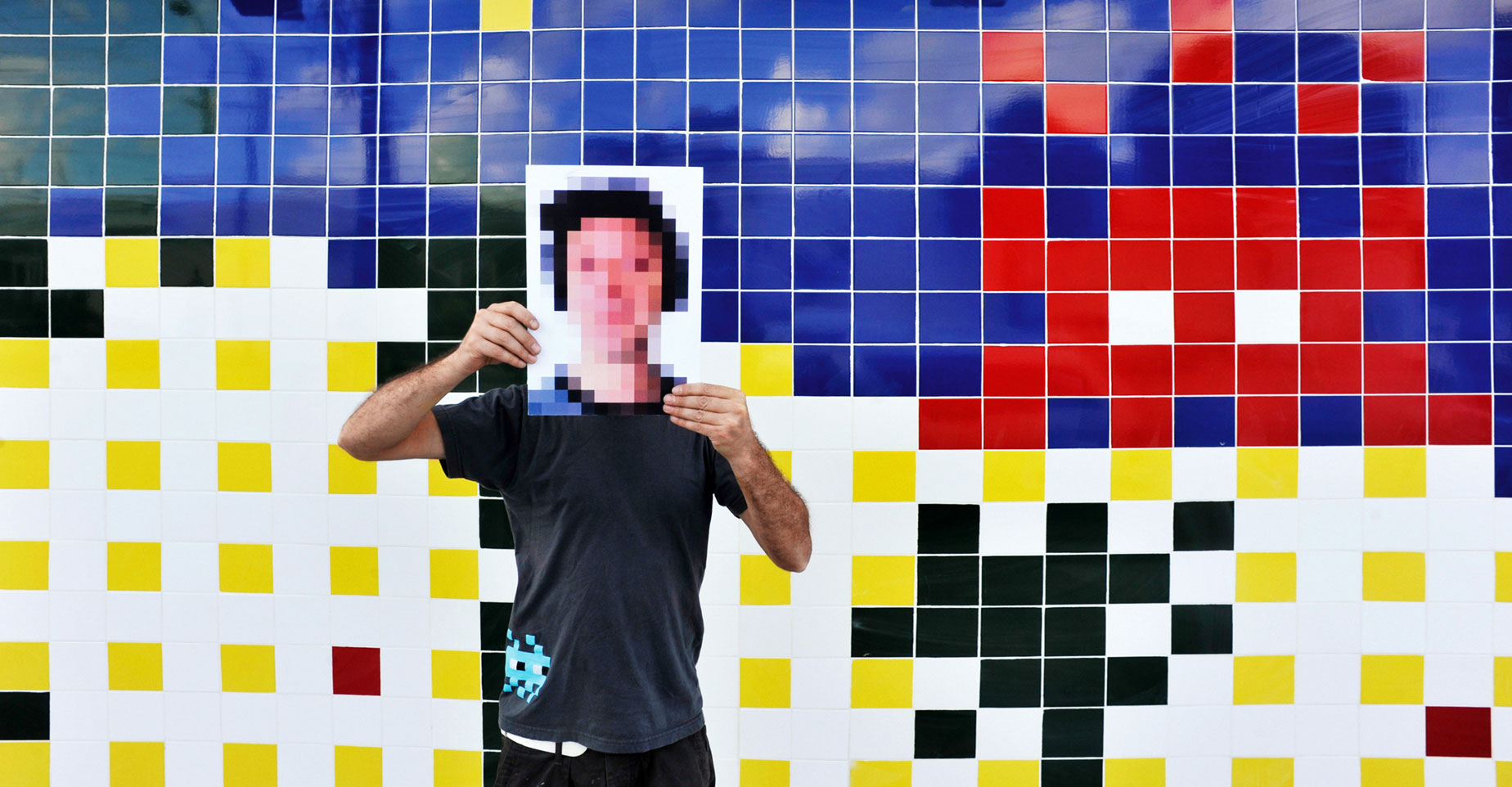 Invader is an anonymous French street artist who is best known for his use of ceramic tile mosaics to create pixelated video game scenes. Invader’s work is inspired by games such as Pacman, Space Invaders, and Super Mario Bros. They also use QR Codes and rubik’s cubes as a medium for mosaic works.Invader’s street art can be seen in New York, Hong Kong, and Paris. Invader’s works mix the playfulness of early computer and game tech and inserts it into the hubbub of daily urban life.